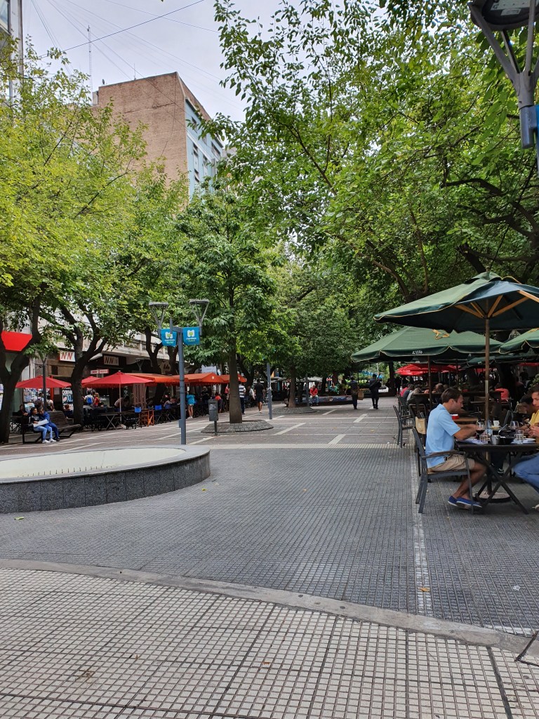Mendoza on heti huomattavasti erilainen kuin Buenos Aires, se tuntuu enemmän pikkukaupungilta. Väkiluku on luonnollisesti pienempi, mutta kyseessä on kuitenkin miljoonakaupunki. Rakennukset ovat matalampia ja city vaikuttaa symppikselle.